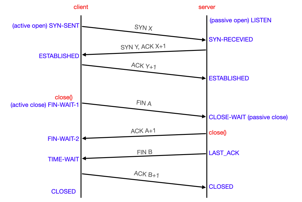 SYN-RECEIVED(SYN-RCVD) : SYN+ACK을 보내고 ACK를 기다리는 상태