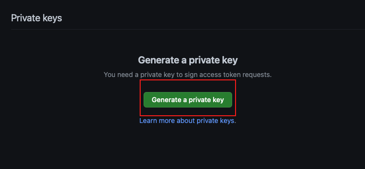 - 아래쪽으로 스크롤을 하여 Private keys 의 Generate a private key 버튼 클릭