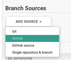 - Branch Sources > GitHub App 선택