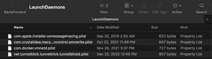 open /Library/LaunchDaemons4. .plist 파일이 있는데 삭제하고 싶은 아이템에 대한 .plist 파일을 지운다.