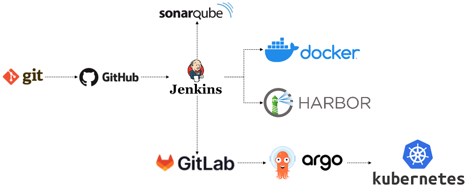- gitlab : id/token 을 이용하여 k8s 설정 파일 (deploy/service/configmap/etc.) 을 수정 및 푸시